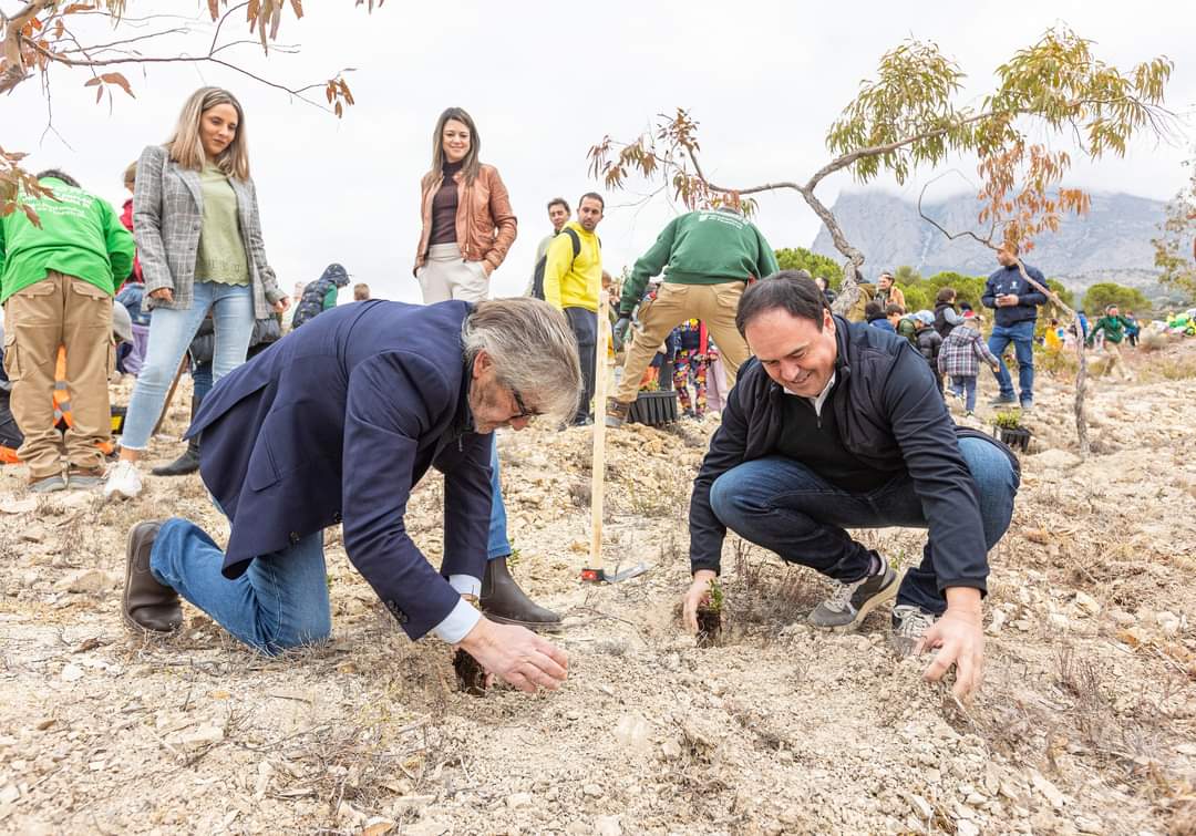 Este miércoles se celebra la 34ª edición del Dia de l’Arbre de la Comunitat Valenciana y la Generalitat ha elegido Finestrat para acoger el acto central. Concretamente, la micro reserva de flora el Tossal dels Corbs donde cerca de 600 escolares de los dos centros educativos de la localidad, el Puig Campana y el Balcó de Finestrat, han plantado 880 ejemplares de especies autóctonas como coscoja, algarrobo y lentisco.