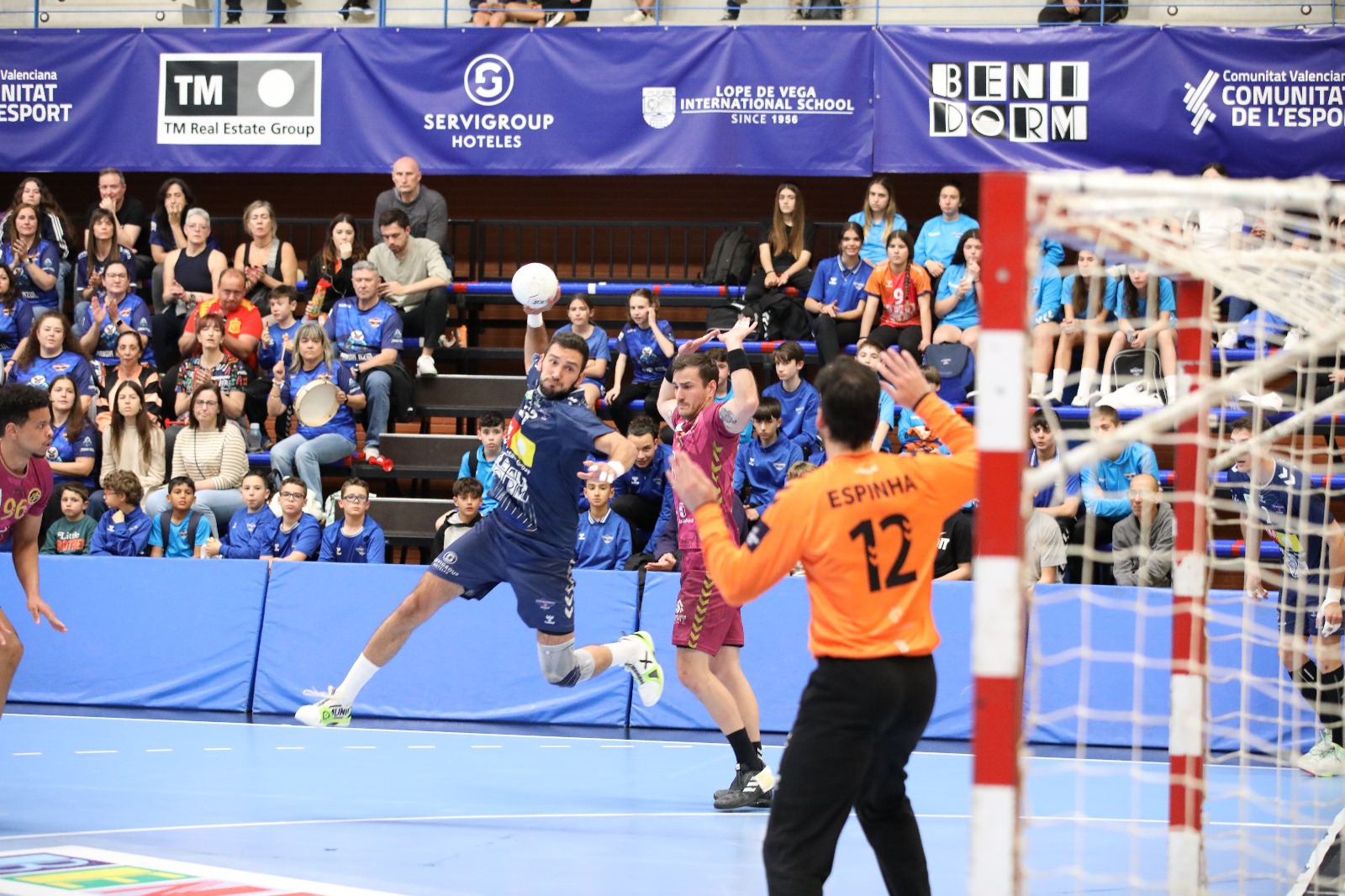 Las dos penas máximas, convertidas por Nacho Valles, terminaron de despertar a un TM Benidorm que en ese momento comenzó a dar su mejor cara. La de las transiciones rápidas, los aciertos en la portería contraria y, sobre todo, la contundencia defensiva que desbarataría a un Cuenca que veía que esa veta de metal precioso que había podido explotar en los primeros minutos se agotaba sin remedio.