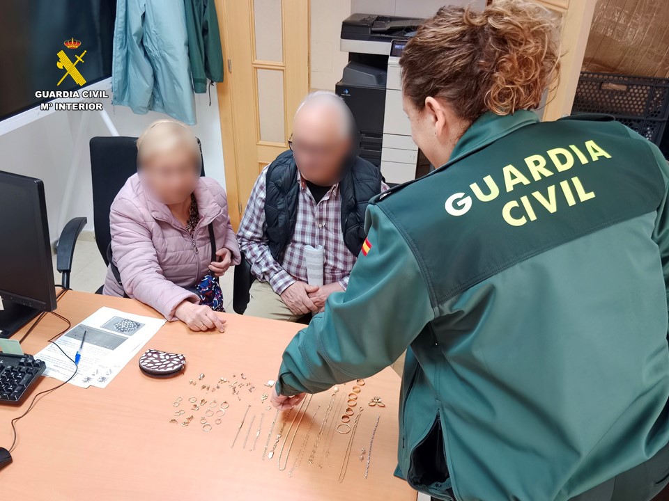 Los agentes han devuelto las joyas a los propietarios, que se trasladaron desde su residencia en la provincia de Barcelona hasta el cuartel de la Guardia Civil, muy agradecidos dado el valor sentimental que las piezas tenían para ellos.