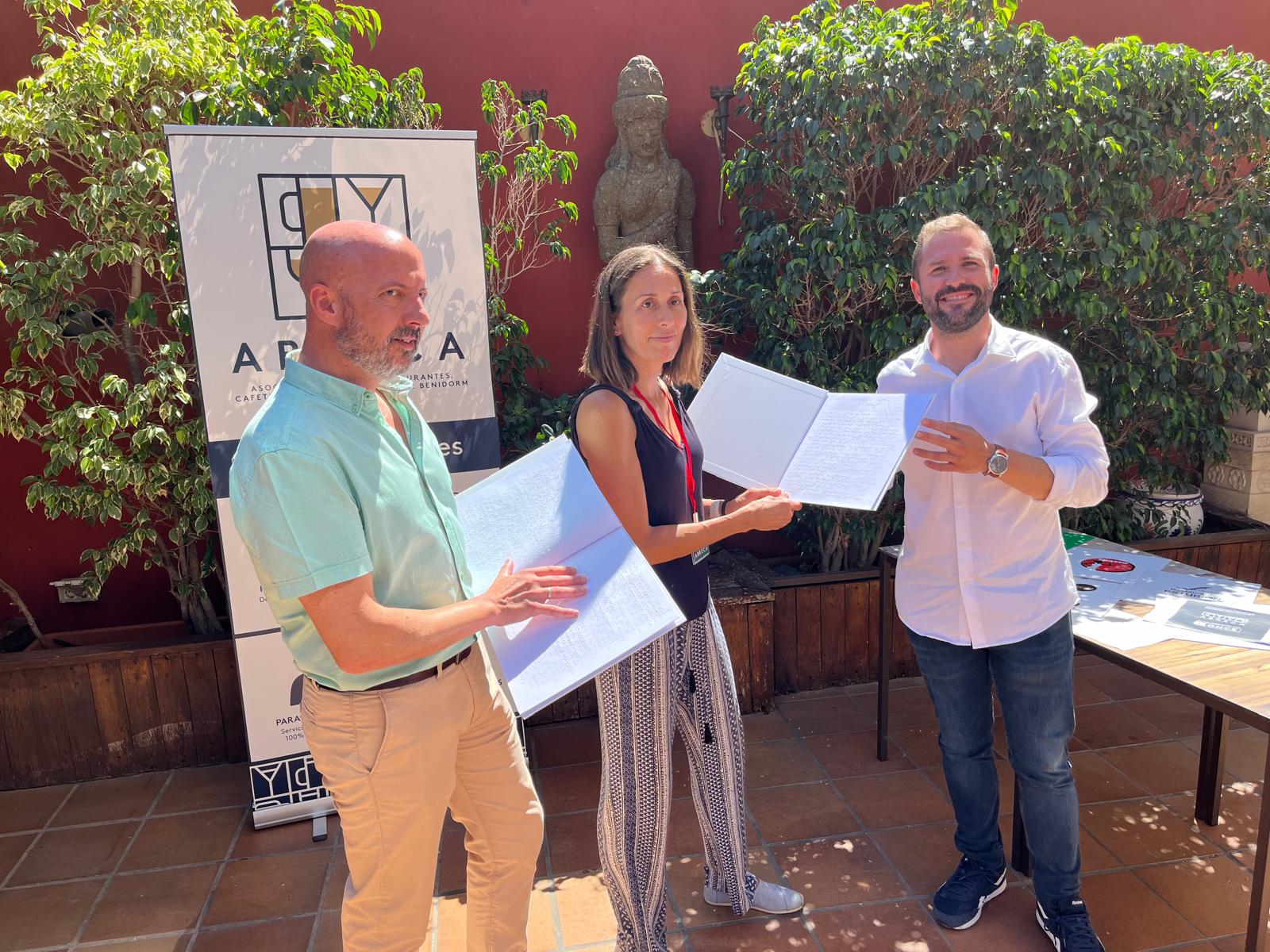 Mediante un convenio suscrito este jueves entre la asociación local de hostelería ABRECA y la ONCE, los locales de restauración de Benidorm mejorarán su accesibilidad incorporando en sus cartas una transcripción de sus platos y bebidas en braille.