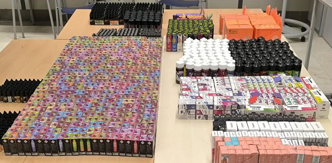La Policía Local de Benidorm ha intervenido 2.000 dispositivos tipo vaper en un local de la ciudad por no cumplir la normativa. Entre las irregularidades detectadas figura el mal etiquetado de los dispositivos, el contenido en nicotina por encima del 2% o la venta de cartuchos de recarga con más de 2 ml.