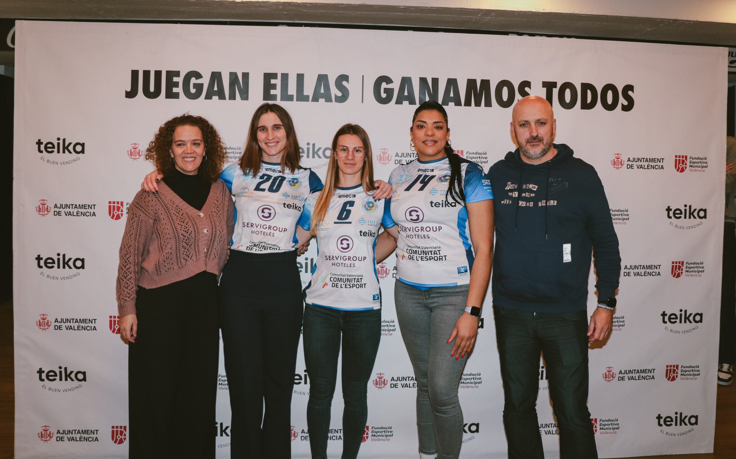 El Club Voleibol Playas de Benidorm, representado por su director deportivo, Ramón González, la entrenadora Noelia Santacreu y las jugadoras María Soldevila (capitana), Yusidey Silie y Patricia Calabuig, participó ayer en la presentación oficial de la octava edición de la campaña ‘Juegan ellas, ganamos todos’, impulsada por Teika, principal patrocinador del equipo. El evento se celebró en el emblemático pabellón de la Fonteta de València, donde se reunieron representantes de 17 clubes de diversas disciplinas deportivas.