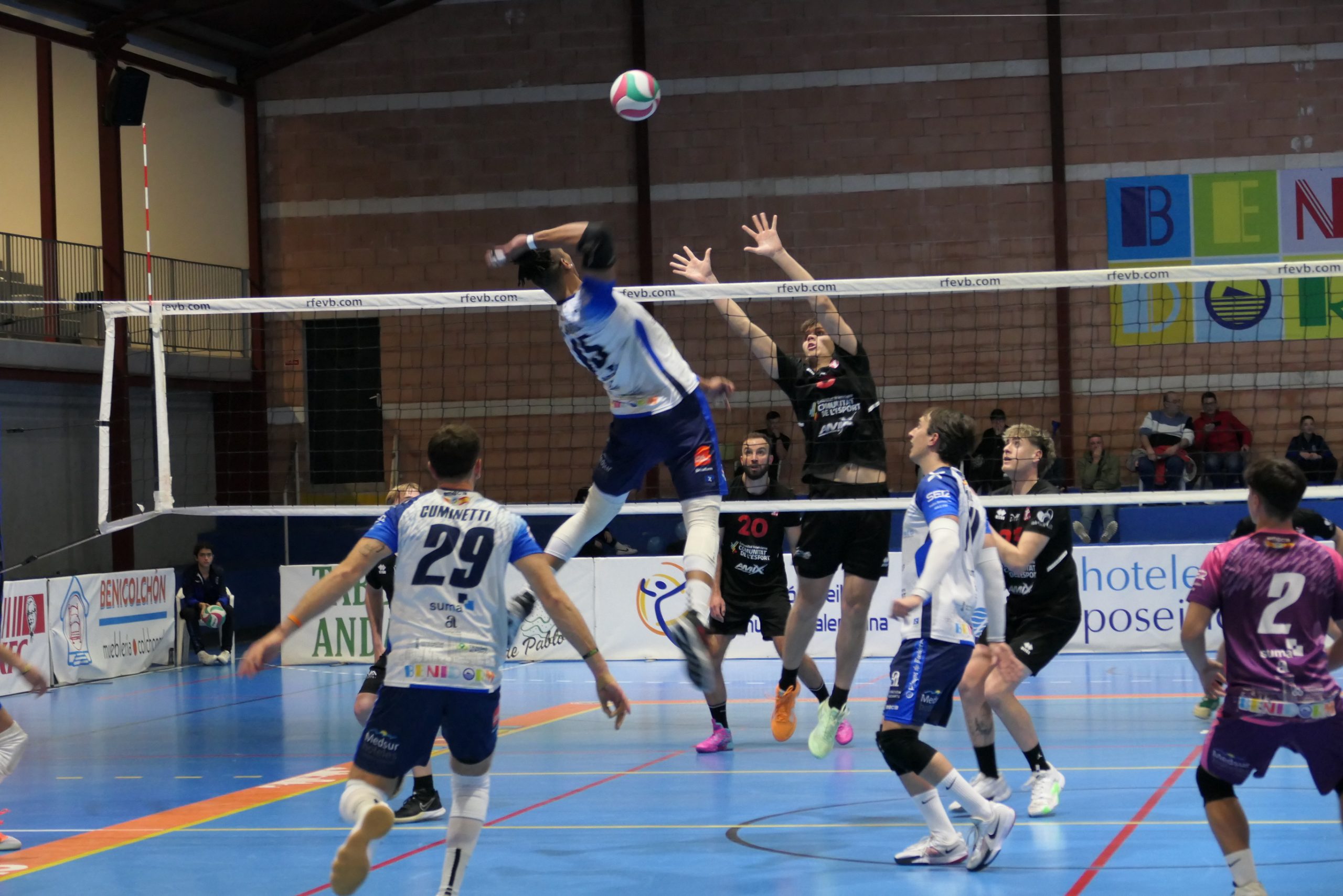 El Servigroup Playas de Benidorm masculino reafirmó su liderato en la Superliga 2 tras una convincente victoria por 3-0 (25-21, 25-14, 25-16) ante el CV Almoradí en el Pabellón Raúl Mesa. El triunfo, sumado a la derrota del Villena-Petrer en Pinto, permite al equipo benidormense ampliar su ventaja en la clasificación y acercarse un poco más a la fase de ascenso. Ahora mismo, su ventaja sobre los terceros clasificados es de 12 puntos cuando restan 21 por disputarse.