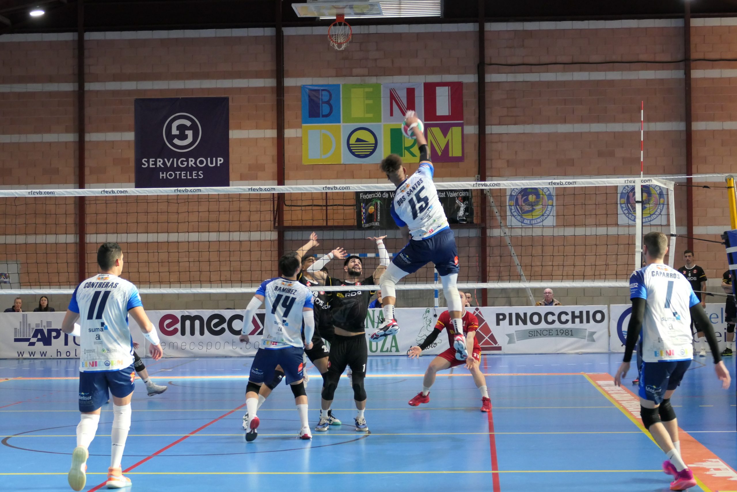 Con todo, el equipo local se dejó el primer set por el camino antes de remontar para hacerse con los tres puntos gracias al 3-1 (23-25, 25-22, 25-21 y 25-21) final que, unido a la victoria del Cartagena, también por 3-1, ante el Medsur-Finestrat deja a ambos equipos con los mismos 39 puntos a falta de sólo una jornada, la del próximo fin de semana, en la que las murcianas visitan al ya descendido Xàtiva y las benidormenses visitarán la cancha del Guía, segundo clasificado y ya matemáticamente metido en la pelea por el ascenso.
