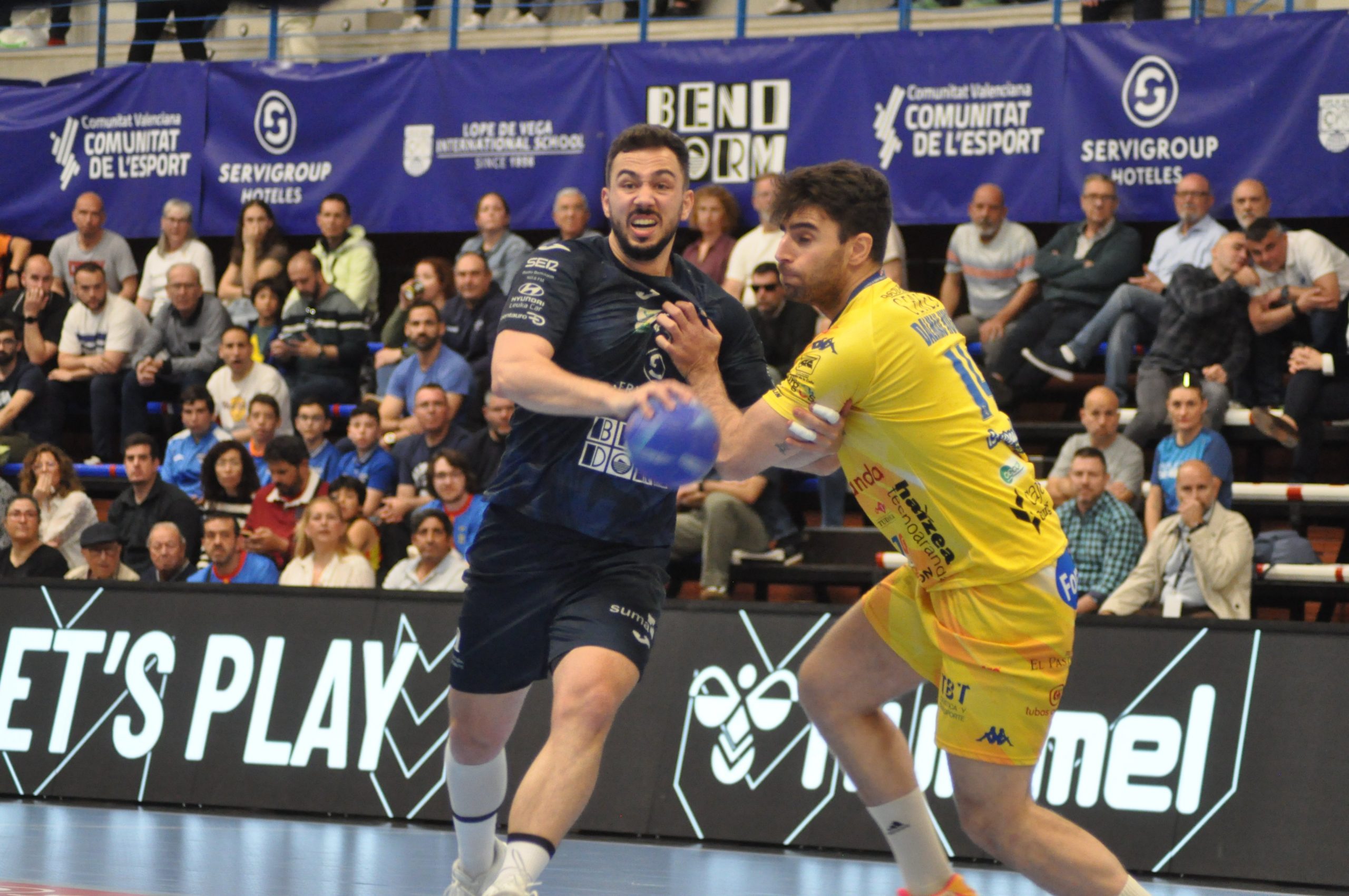 Esa fase del juego coincidió, además, con el ‘despertar’ de Domenech en la portería benidormenses, completando el cancerbero local algunos de sus mejores minutos permitiendo a los suyos mantenerse vivos en un choque que entró en sus diez minutos finales, siempre con el Servigroup Hoteles Benidorm jugando sus ataques a portería vacía, con 27-26 en el marcador.