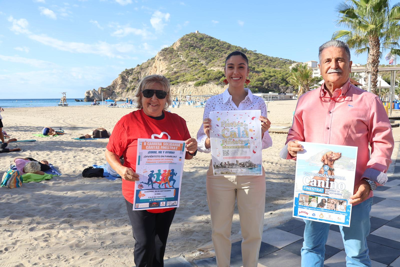 Finestrat se prepara para despedir el verano con sus tradicionales Fiestas de La Cala este último fin de semana de Septiembre. 3 intensas jornadas festivas con un variado programa que combina música en directo con el Tributo a Fito & Fitipaldis, actividades y animación para los peques como hinchables y espectáculo de circo, tardeo, sesión Dj con Toni Medina, el Concurso Nacional Canino y la solidaridad de la mano de Cáritas y su carrera popular solidaria.