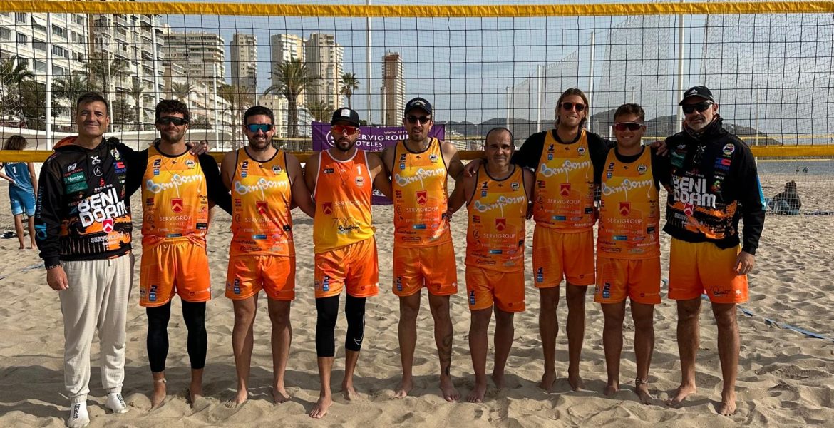 Benidorm vivió este domingo una de sus grandes mañanas deportivas en la Playa de Poniente, donde el Servigroup Poniente Benidorm firmó un doblete histórico en la segunda jornada de la Liga Nacional de Vóley Playa. Tanto el equipo femenino como el masculino se impusieron a Beachbol Valencia en una cita marcada por el buen ambiente, el gran nivel competitivo y el respaldo de la afición local, que volvió a llenar la grada natural del arenal benidormense.