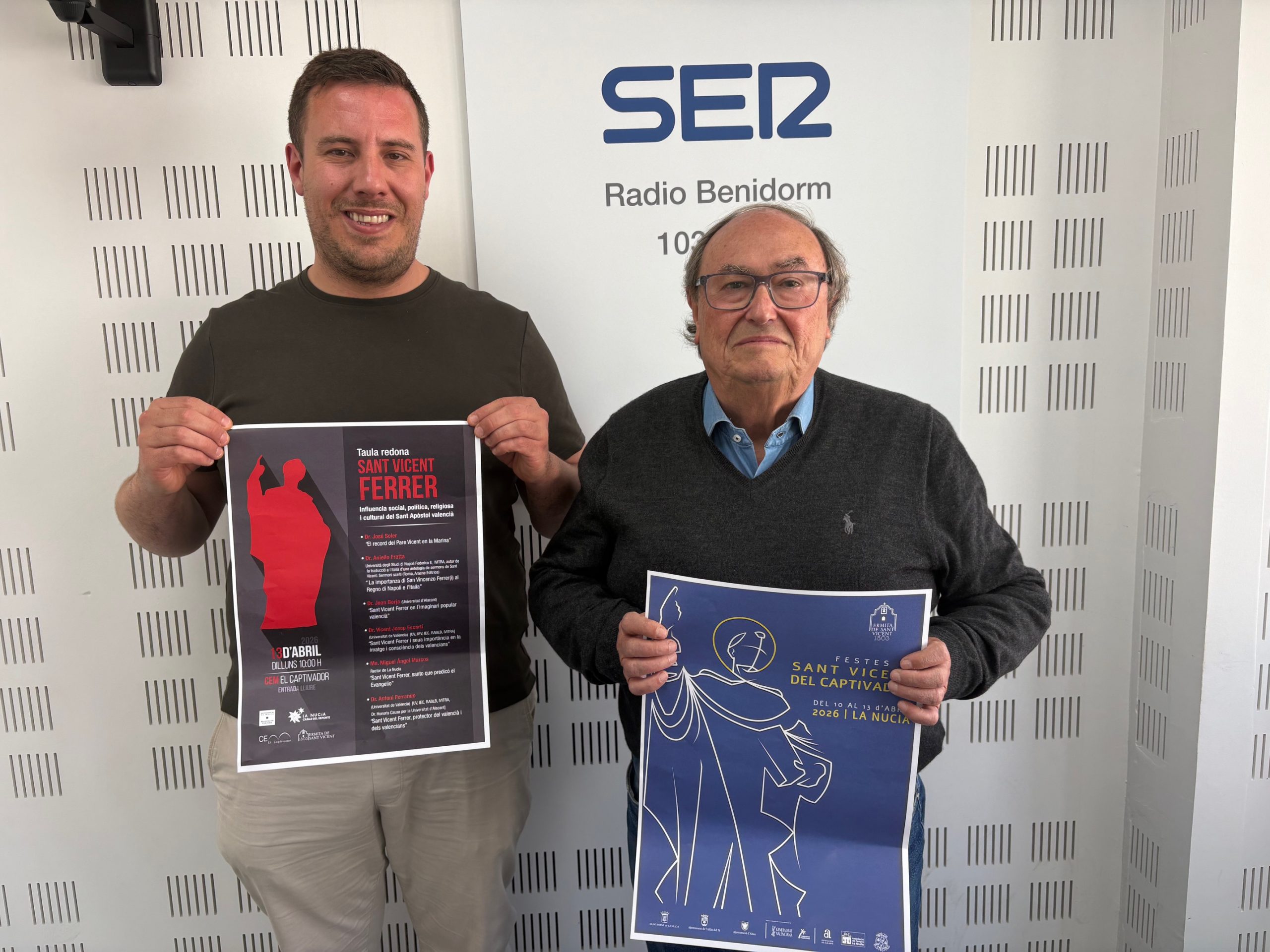 El lunes 13 de abril, día de Sant Vicent, a las 10 horas se realizará la mesa redonda “Sant Vicent Ferrer: influencia social, política, religiosa i cultural del Sant Apòstol valencià” en el CEM Captivador. Una sesión que reunirá ponentes: Dr. José Soler, Dr. Antoni Ferrando, Dr. Vicent Josep Escartí, Dr. Aniello Fratta, Dr. Joan Borja y Mn. Miguel Ángel marcos, rector de La Nucía. A las 11,45 horas comenzará la romería de la imagen del santo que saldrá desde el CEM del Captivador.